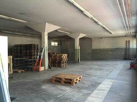 200m2, ebenerdiger, rechteckiger Raum mit sep. WC, beheizt, befahrbar (grosses Tor 3.15x2.95m).